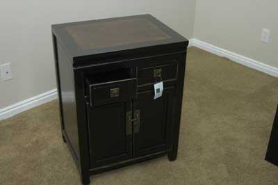 designed to have a smoth glazed hand crafted woven wicker inlay. The cabinet